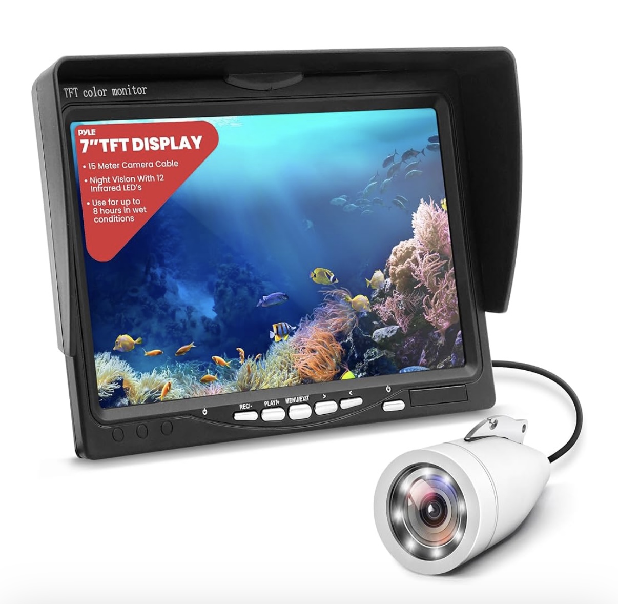 Underwater Fishing Camera, Live Scope Deeper Fishing Line Fish Finder, Go Fish Ice Depth Video Camera For Boats, 7" Portable LCD Monitor, IP68 Water-Resistant, Includes Carrying Case, Sunshield Cover
